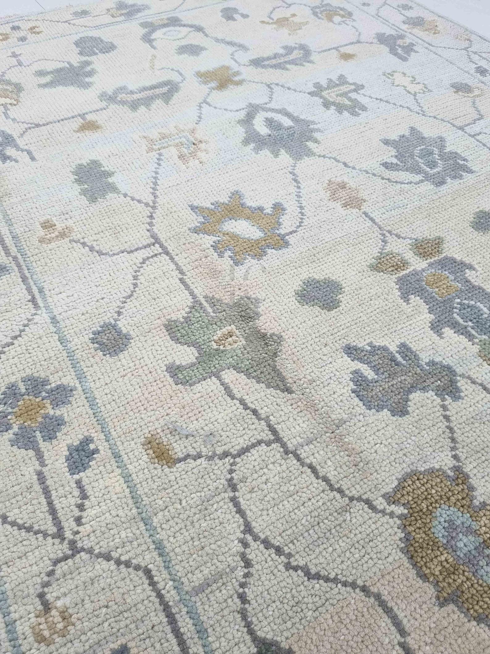 Perfect for living rooms, bedrooms, or designer spaces, each rug is handwoven by expert Turkish artisans preserving centuries of Oushak weaving tradition. Its plush wool texture, soft pastel hues, and floral motifs make it a sophisticated centerpiece in any home.